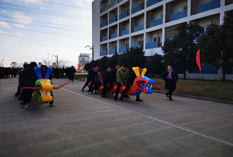 本次趣味運動會分為團體和個人項目,比賽共設(shè)置了“拔河”、”旱地龍舟”、“定點投籃”、“混合接力”、“快樂點球”、”同心擊鼓”六個項目。